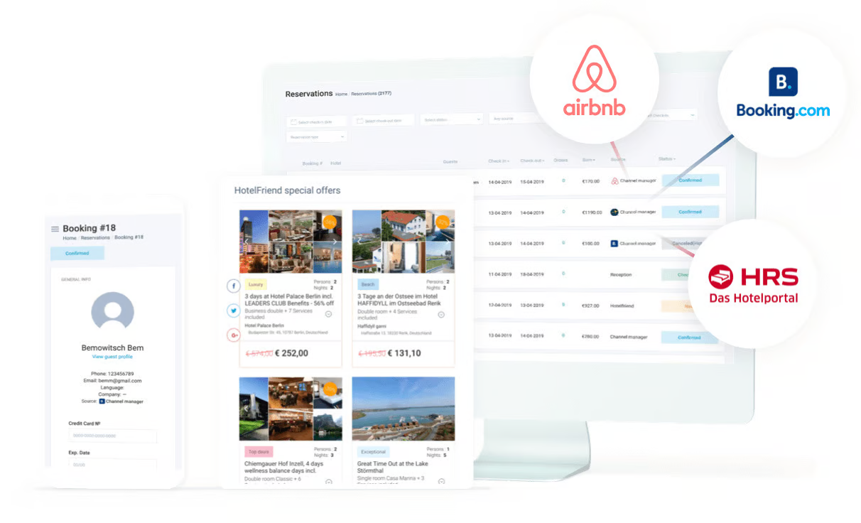 Besides Booking.com and Expedia.com, it also connects to HRS, Hotelbeds, Ctrip and many other channels.